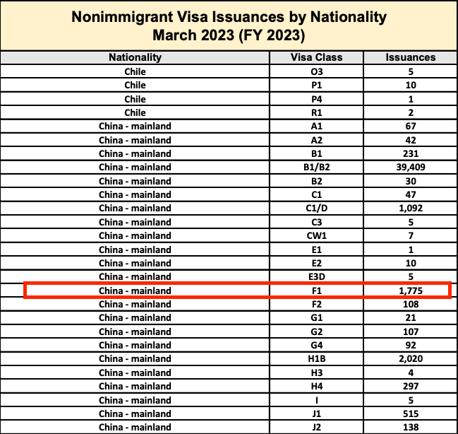 2023年第一季度,中国学生获得美国F1学生签证的数量相比前几年猛增,达到5413人,这一数字超过了疫情前同期水平!