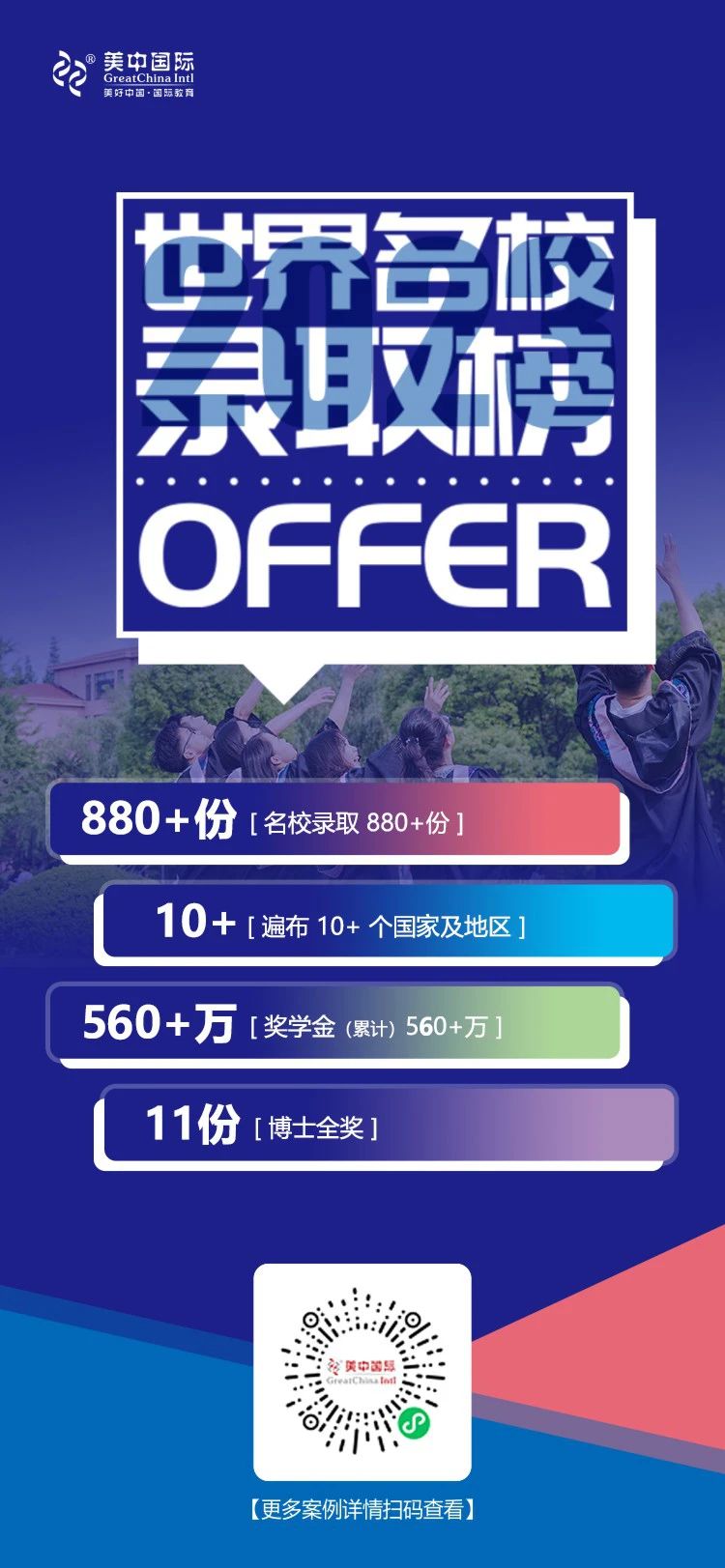 截至4月24日,美中国际学子在2023申请季共斩获880+份世界名校录取!遍布10+个国家及地区,累计获得560+万奖学金。
